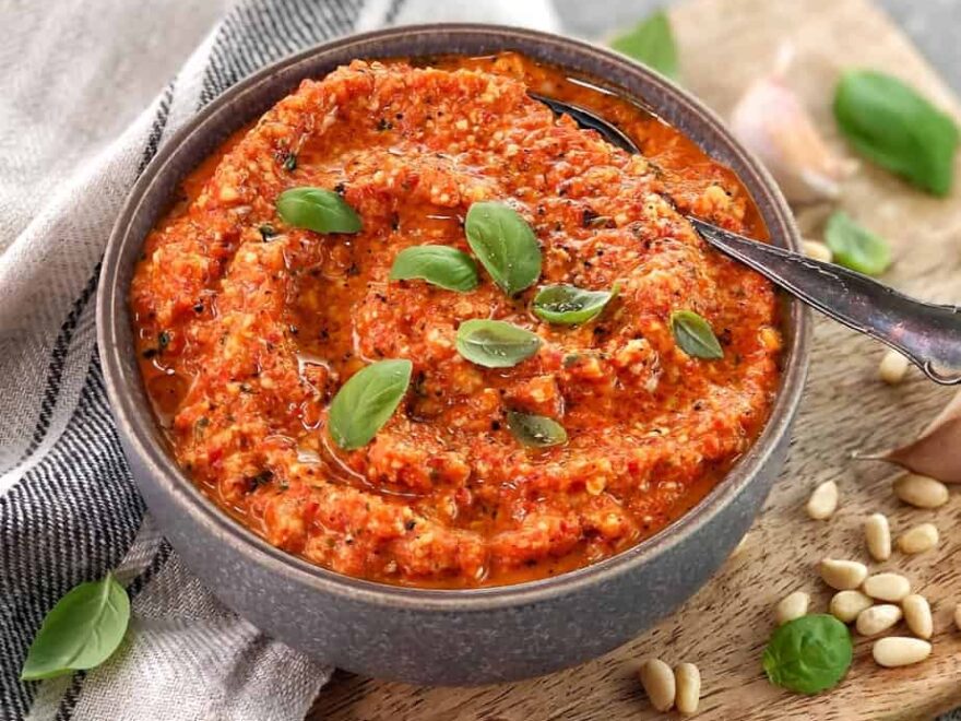 Red Pepper Pesto Red pepper pesto is a vibrant, flavorful variation of traditional basil pesto, using roasted red peppers as
