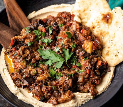 Baba Ganoush Baba Ganoush is a creamy, smoky Middle Eastern dip made from roasted eggplant, tahini, garlic, lemon juice, and