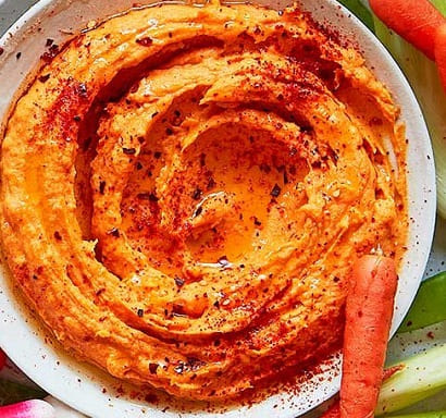 Carrot Hummus Carrot hummus is a delicious and healthy variation of traditional chickpea hummus. By incorporating roasted carrots, this recipe